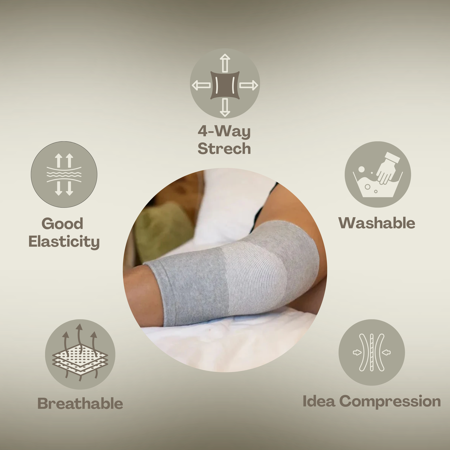 The bamboo fiber composition provides natural breathability and thermoregulation, ensuring skin remains dry and irritation-free even during prolonged wear. Its high elasticity ensures a secure yet flexible fit, adapting to various knee shapes and motion patterns without slippage.